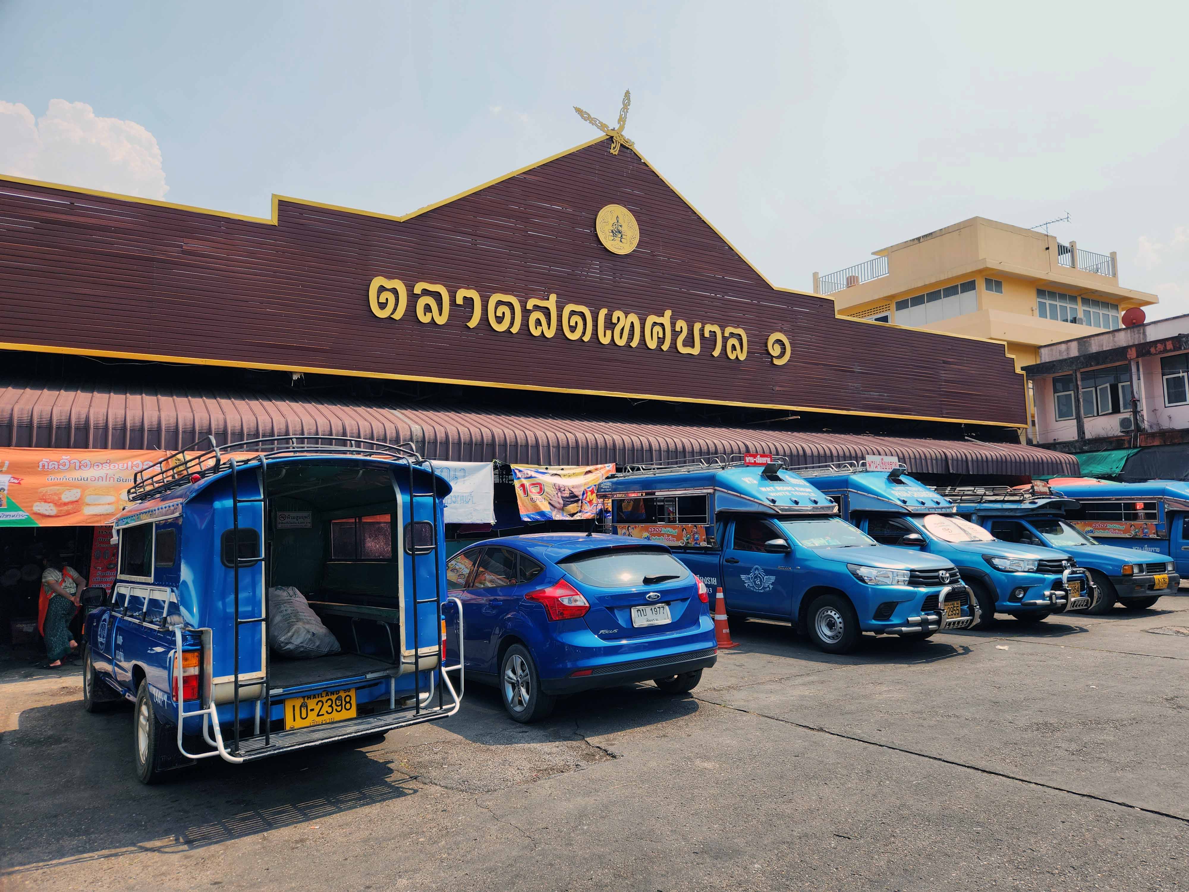You can also go to "Municipality Market" that take around 10 mins by walk from Baan Mai Kradan Hostel to take the "Blue Pick-up". This local terminal is just a bit further from The Old Clock Tower where you will find them parking in front of the entrance to the market.