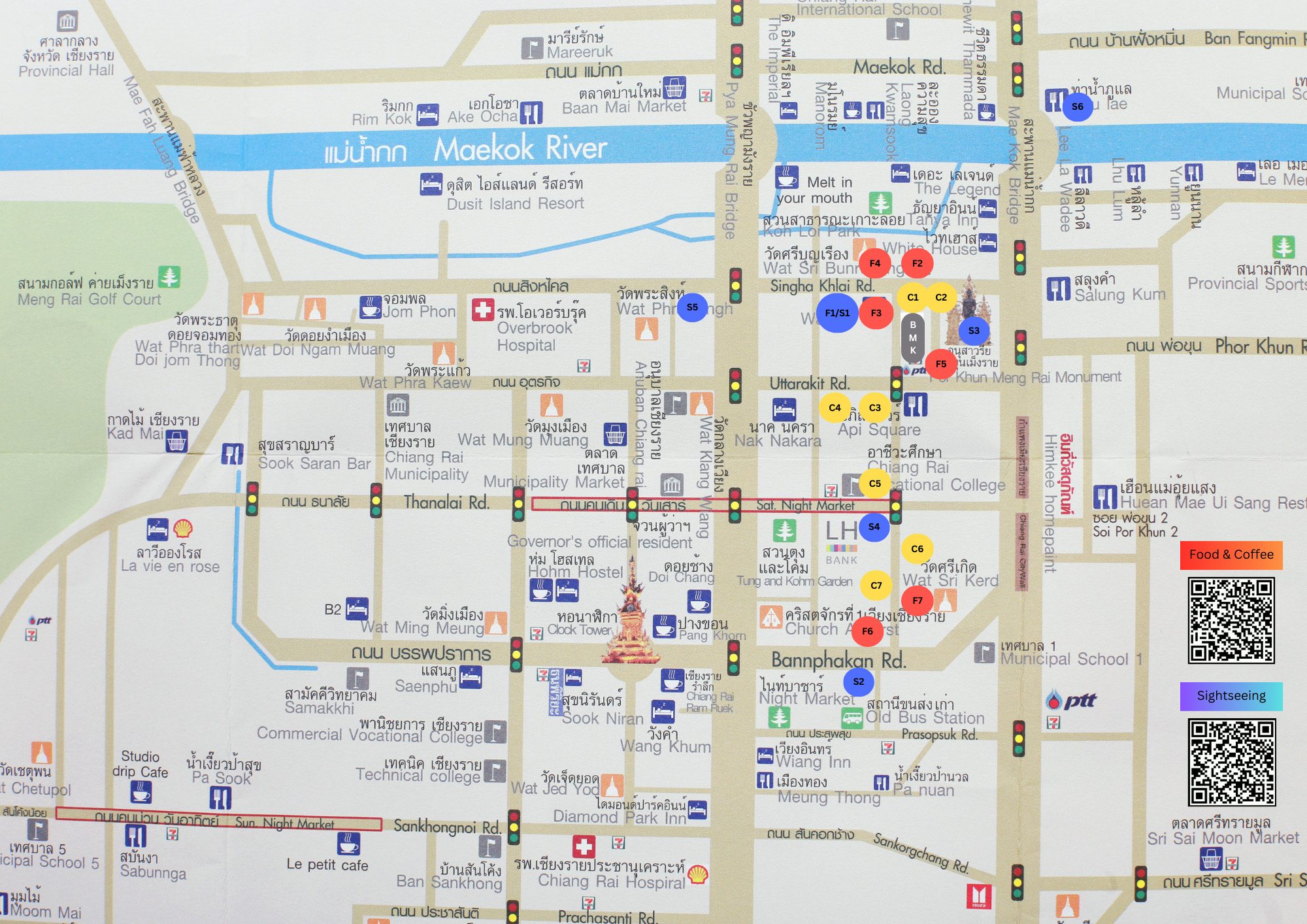 Distance: Turn LEFT from Baan Mai Kradan Hostel, then walk straight to the 3rd intersection and turn right to "Agricultural Market Chiang Rai" 650 meters.