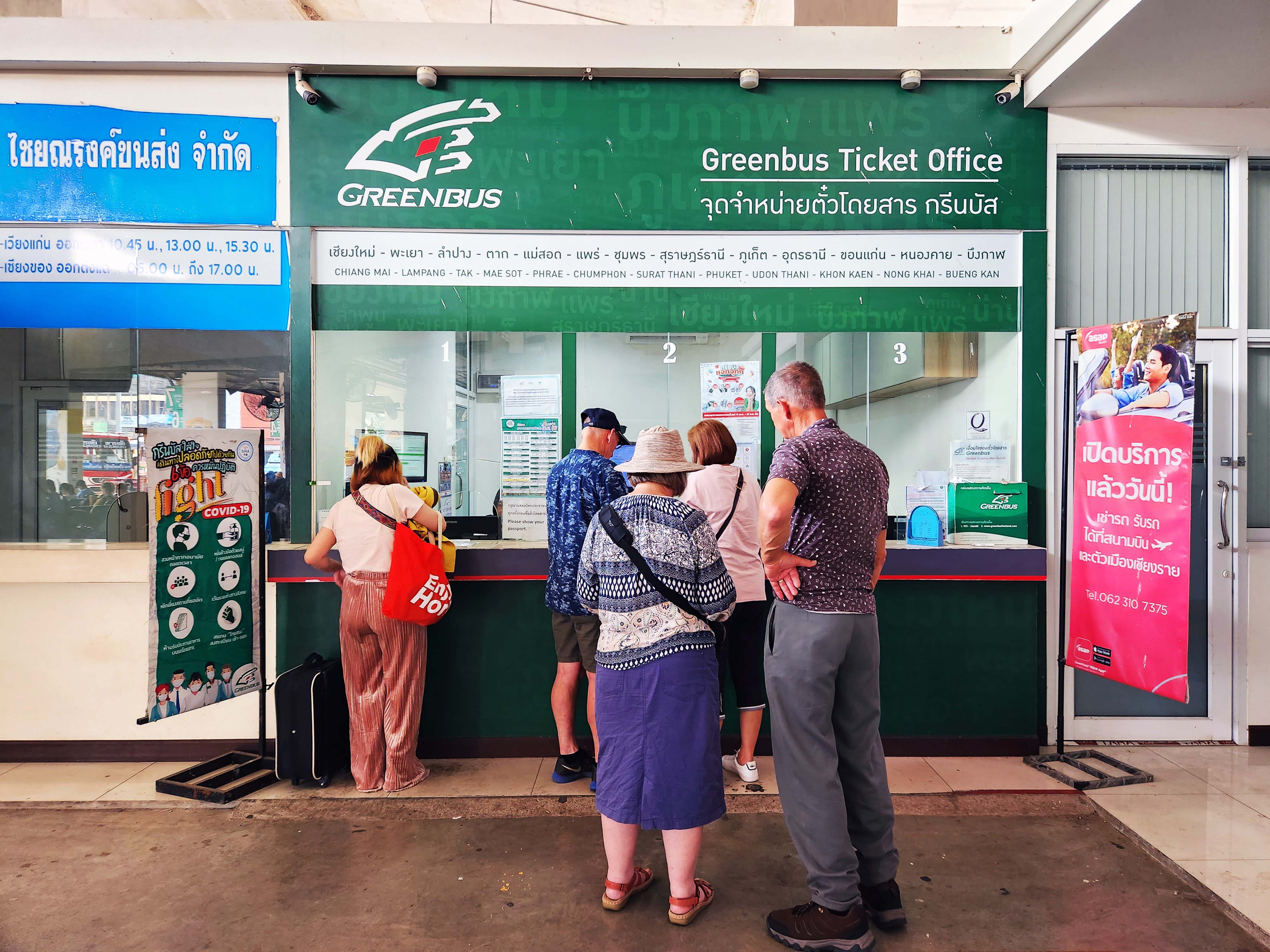 เริ่มต้นจาก Baan Mai Kradan Hostel โดยไปที่สถานีขนส่งแห่งที่ 1 (เดินประมาณ 10-15 นาที) จากนั้นคุณสามารถซื้อตั๋วที่บูธ "กรีนบัส" เริ่มต้นที่ 196 บาท (ธรรมดา) และ 305 บาท (วีไอพี) ไปเชียงใหม่