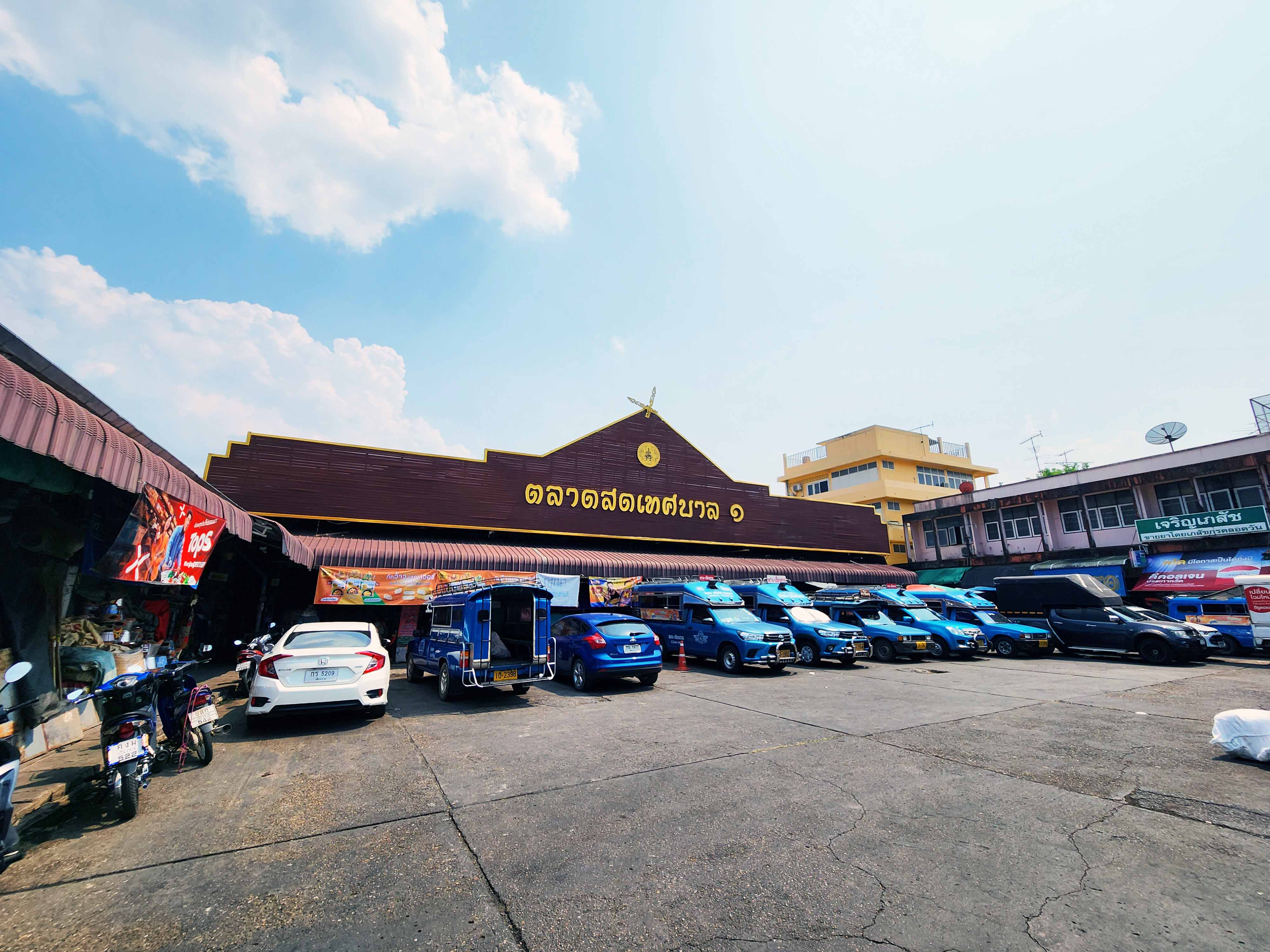 คุณยังสามารถไปที่ "ตลาดสดเทศบาล 1" หรือ กาดหลวง ซึ่งใช้เวลาประมาณ 10 นาทีโดยการเดินจากบ้านไม้กระดานโฮสเทลเพื่อขึ้น "รถปิคอัพสีฟ้า" อาคารผู้โดยสารท้องถิ่นนี้อยู่ห่างจากหอนาฬิกาเก่าเพียงเล็กน้อย ซึ่งคุณจะพบที่จอดรถด้านหน้าทางเข้าตลาด