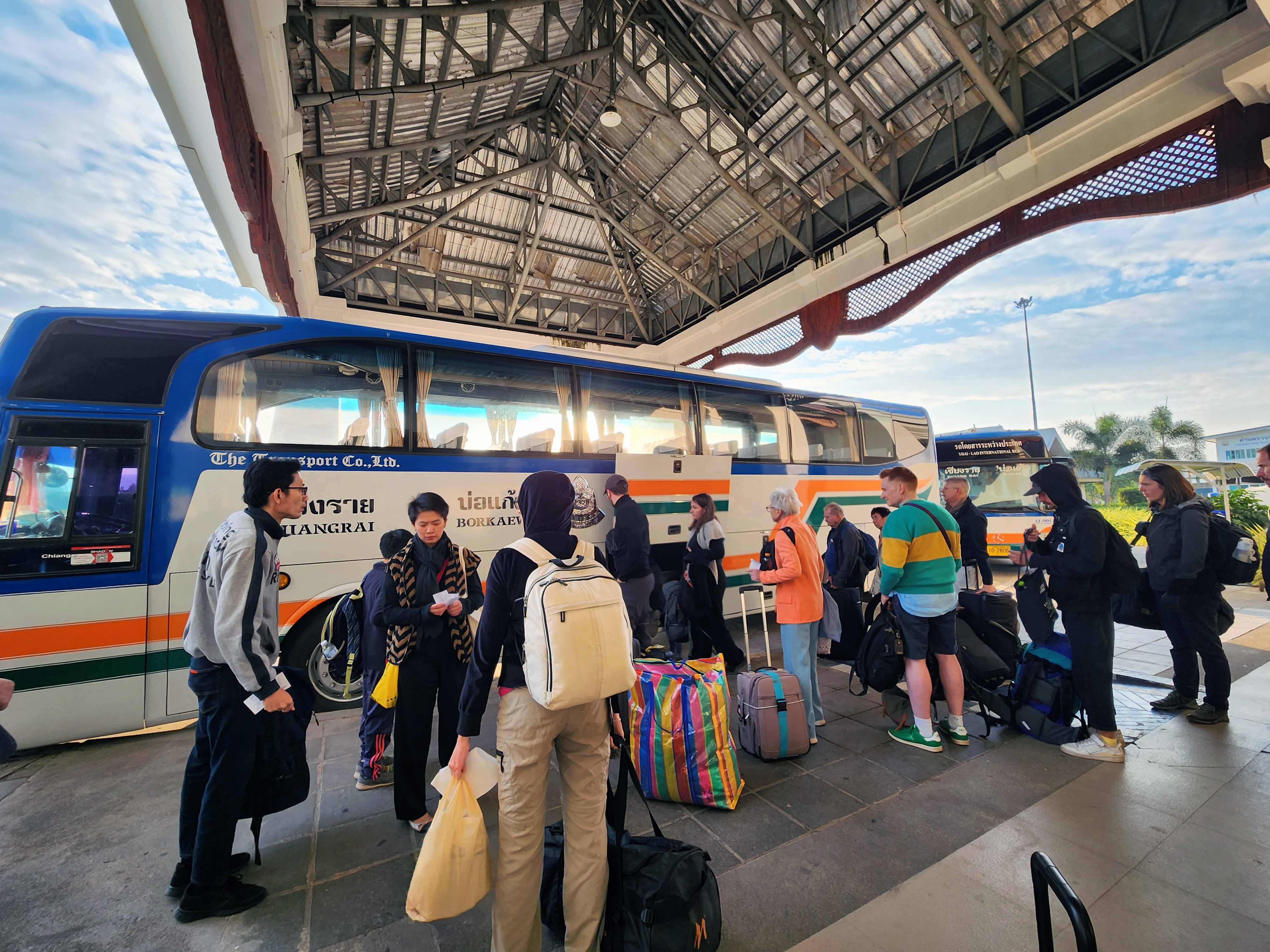 1. การเดินทางจากตัวเมืองเชียงราย ไปสู่เชียงของใช้เวลาโดยประมาน 2 ชม. เพื่อไปทำเอกสารผ่านแดน (Border Pass) ที่ด่านตรวจคนเข้าเมืองเชียงของ (Chiang Khong Immigration) ในกรณีที่ต้องทำ VISA (สำหรับบางประเทศ) ค่าทำเอกสาร VISA อยู่ที่ 40 USD โดยนักท่องเที่ยวสามารถใช้เงินไทยบาท โดยคิดตามอัตตราแลกเปลี่ยนในวันเดินทาง การเดินทางข้ามจากฝั่งไทย (Thai Border) ไปสู่ฝั่งลาว (Laos Border) ที่เมืองห้วยทราย (Huay Xai) มีรถบัสให้บริการ ค่าโดยสาร 25 บาท (รวมในแพคเกจ)