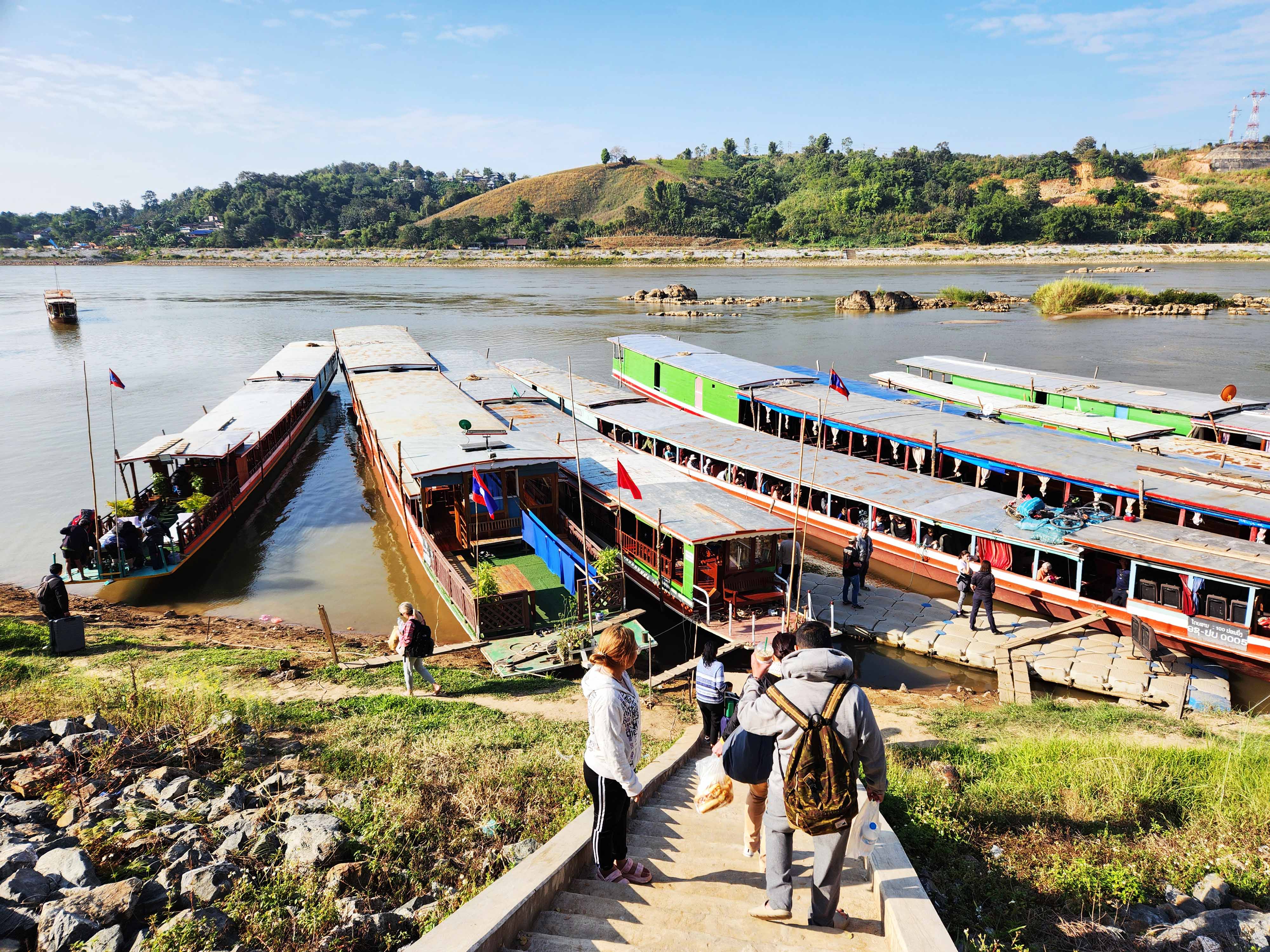 3. การเดินทางโดยเรือจะมีแวะพัก 1 คืน ที่ปากแบง (Pak Beng) เมืองเล็กติดริมแม่น้ำโขง แวดล้อมด้วยบรรยากาศภูเขาต้นไม้สวยงาม ที่ท่าจอดเรือจะมีโรงแรมใกล้ๆ สามารถเดินหาที่พักค้างคืนได้ด้วยตนเอง โรงแรมบางแห่งที่ห่างออกไปจากท่าเรือจะมีบริการรถรับส่ง โดยคนขับยืนถือป้ายบอกชื่อที่พักและราคาห้อง Tip: นักเดินทางสามารถจองที่พักล่วงจากทางระบบจอง เช่น booking ซึ่งราคาที่พักสำหรับค้างคืนมีตั้งแต่ 300-800 บาท ร้านอาหารสำหรับมื้อเย็นเดินหาได้ทั่วไป ส่วนใหญ่รับเงินบาทด้วย โดยมีเมนูแสดงราคาอาหารไว้ชัดเจน