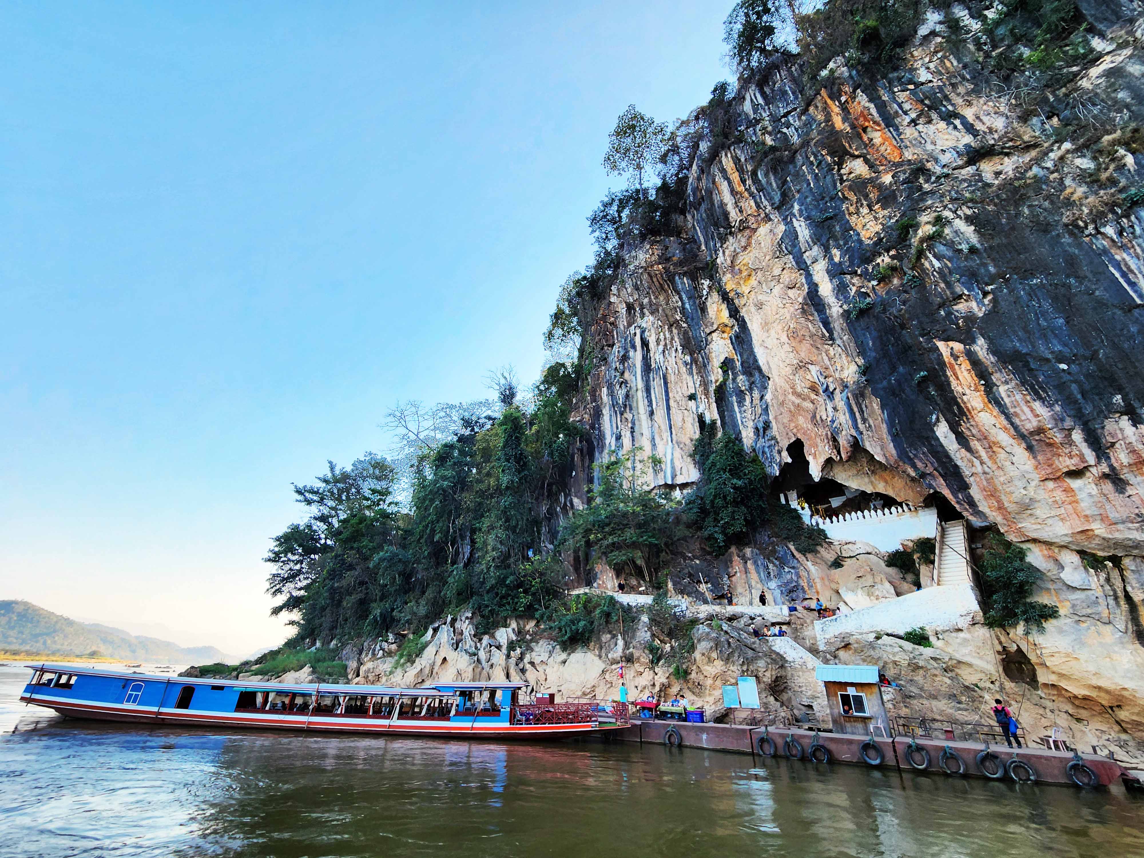 4. เรือจากปากแบง (Pak Beng) ออกที่ท่าเรือเดิมเวลา 8:00-8:30 นักท่องเที่ยวควรเตรัยมอาหารเที่ยงจากที่พักหรือร้านอาหารในหมู่บ้าน โดยเรือที่เดินทางไปหลวงพระบาง จะเป็นเรืออีกลำขนาดใหญ่และนั่งได้สบายขึ้น บนเรือมีขาย บะหมี่สำเร็จรูป สแนก และเครื่องดื่ม การเดินทางใช้เวลาประมาน 7-8ชม. รวมเวลาแวะรับส่งผู้โดยสาร 3-4 แห่ง วิวระหว่างทางมีโขดหินสวยงาม โดยผู้เดินทางมีจุดสังเกตุเมื่อเริ่มเข้าใกล้ตัวเมืองหลวงพระบางคือสะพานข้ามแม่น้ำสำหรับรถไฟความเร็วสูง