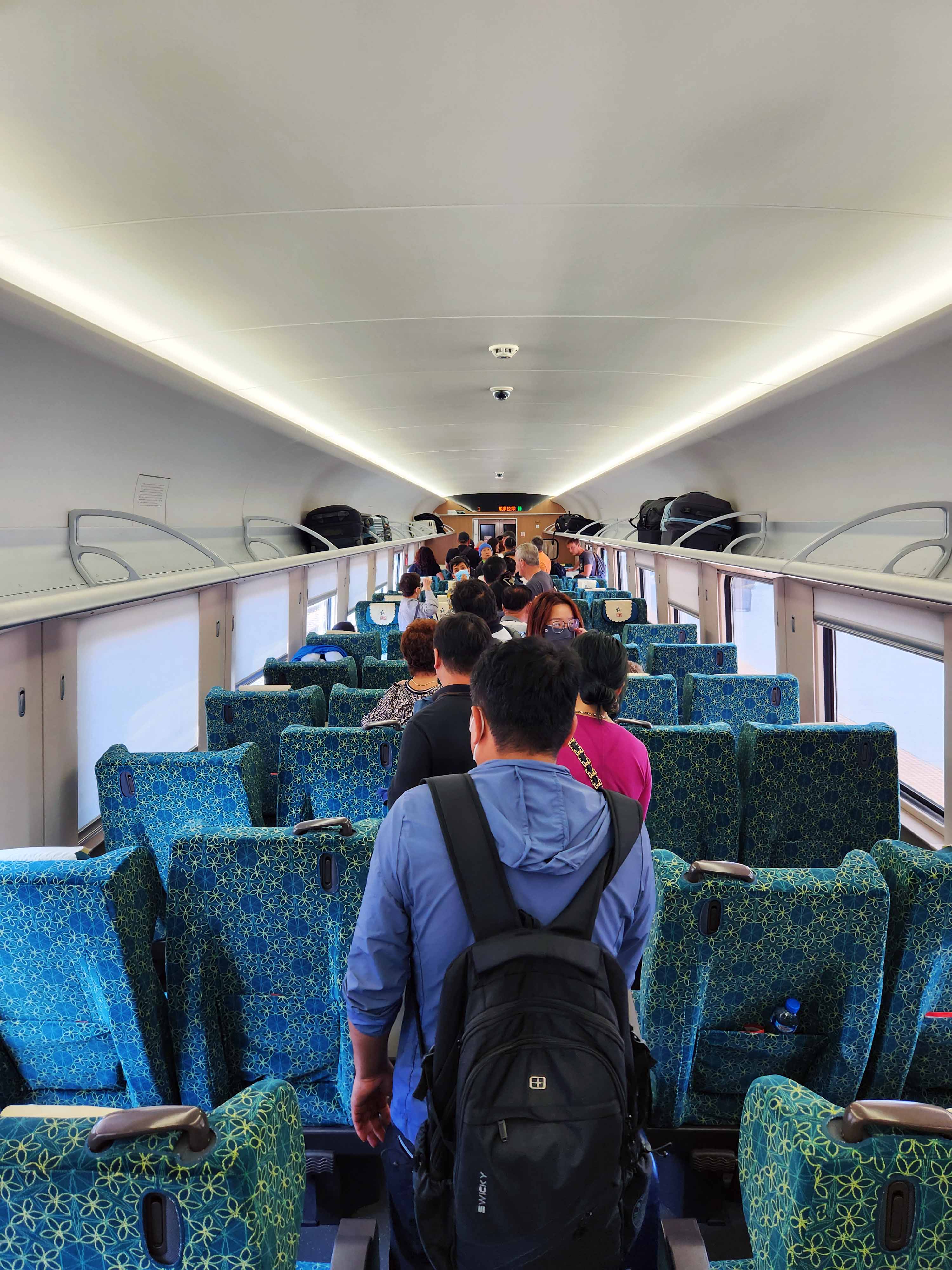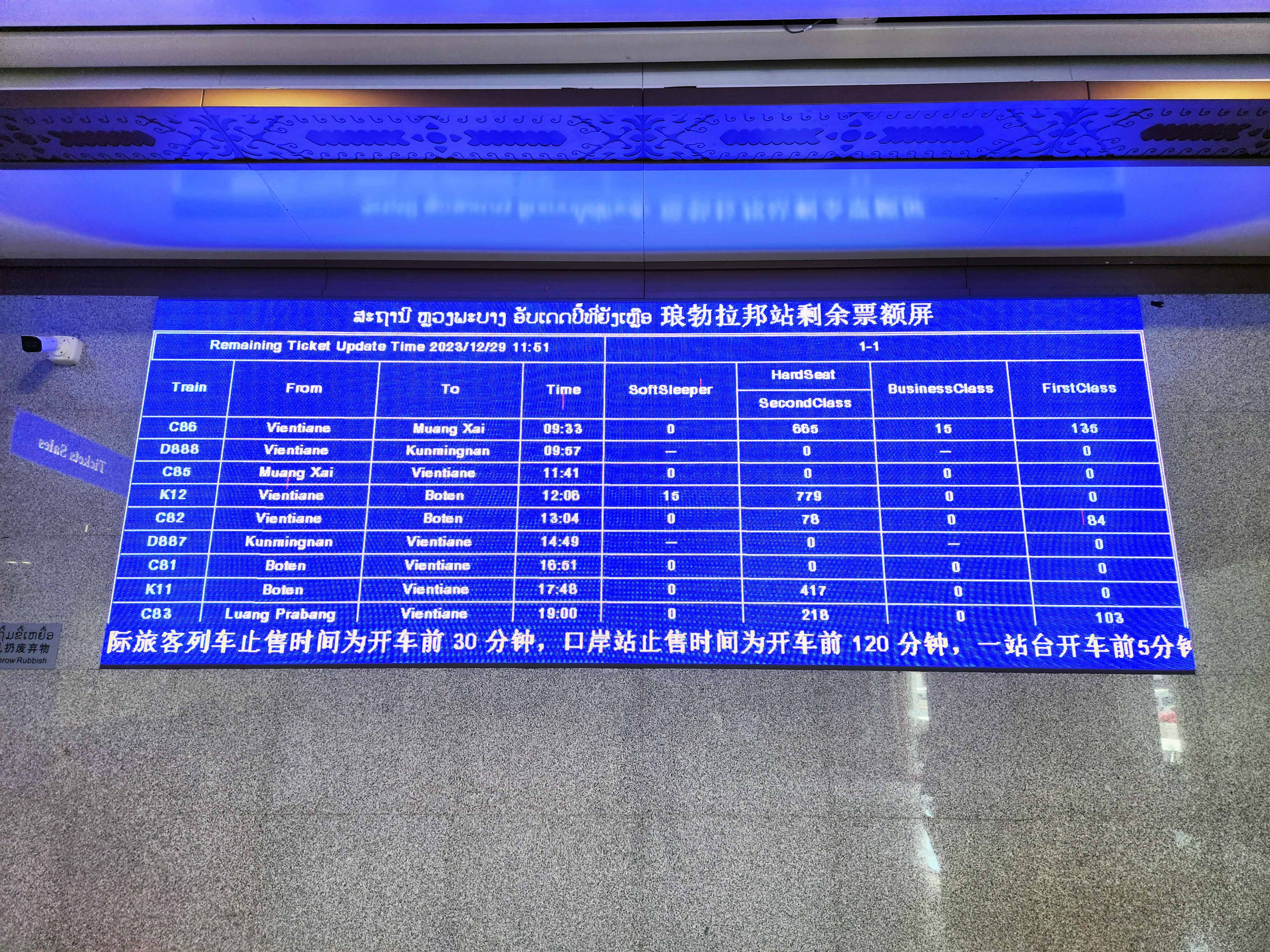 6. สำหรับนักท่องเที่ยวที่ต้องการเดินทางไปเมืองอื่น เช่น เวียงจันทร์ ปัจจุบับมีรถไฟความเร็วสูง (Hi-Speed Train) ให้บริการ โดยการเดินทางจากตัวเมืองไปสถานีรถไฟหลวงพระบางสามารถเรียกรถโดยสาร เหมาจ่ายที่ 150,000 กีบ ใช้เวลาประมาน 30-40 นาที ตั๋วโดยสารรถไฟสามารถซื้อออนไลน์หรือที่เคาร์เตอร์สถานี โดยค่าตั๋วเริ่มต้นที่ 350,000 กีบ โดยประมาน สถานีใหญ่ทันสมัย บนรถไฟที่นั่งกว้างขวางปรับเอนได้สะดวกสบาย มีอาหารเครื่องดื่มให้บริการระหว่างการเดินทาง